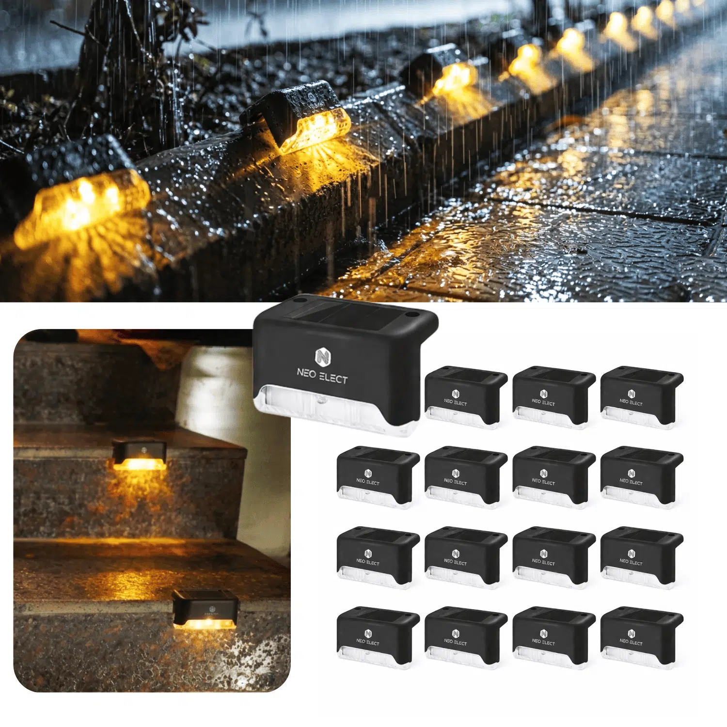 The Neo Elect Solar Fence Outdoor LED Light is a practical and versatile lighting solution designed specifically for steps, stairs, fence railing, and other outdoor areas. Enhance safety and visibility in your outdoor space with the Neo Elect Solar Fence Outdoor LED Light. This pack of 16 lights (also available in Pack of 4 and Pack of 8) offers ample coverage for your steps, stairs, and fence railing, providing illumination and guidance in low-light conditions. Powered by solar energy, these lights are eco-friendly and cost-effective, charging during the day and automatically turning on at dusk. Their durable construction and weatherproof design ensure long-lasting performance, even in harsh outdoor environments. Easy to install with no wiring required, these lights feature a sleek and discreet design that seamlessly blends into your outdoor decor. Illuminate your outdoor pathways and add a touch of safety and style with the Neo Elect Solar Fence Outdoor LED Light.
